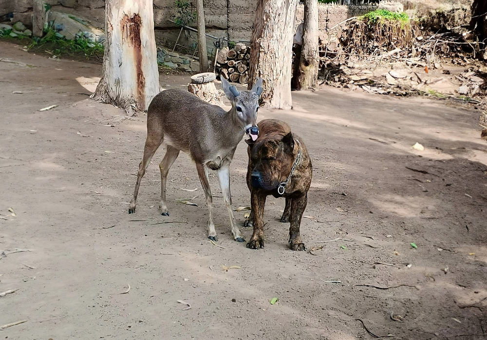 Toro de Irema Curtó, un ejemplar del criadero Irema Curtó, fue enviado a Perú, donde ha desarrollado una inesperada amistad con un joven ciervo. Lejos de los estereotipos que presentan a los Presa Canarios únicamente como perros de guardia y defensa, Toro demuestra una notable capacidad para interactuar de manera amigable y afectuosa con otra especie. Esta relación no solo es un testimonio de su equilibrio mental, sino también de su capacidad de adaptación y de formar lazos positivos más allá de su especie.